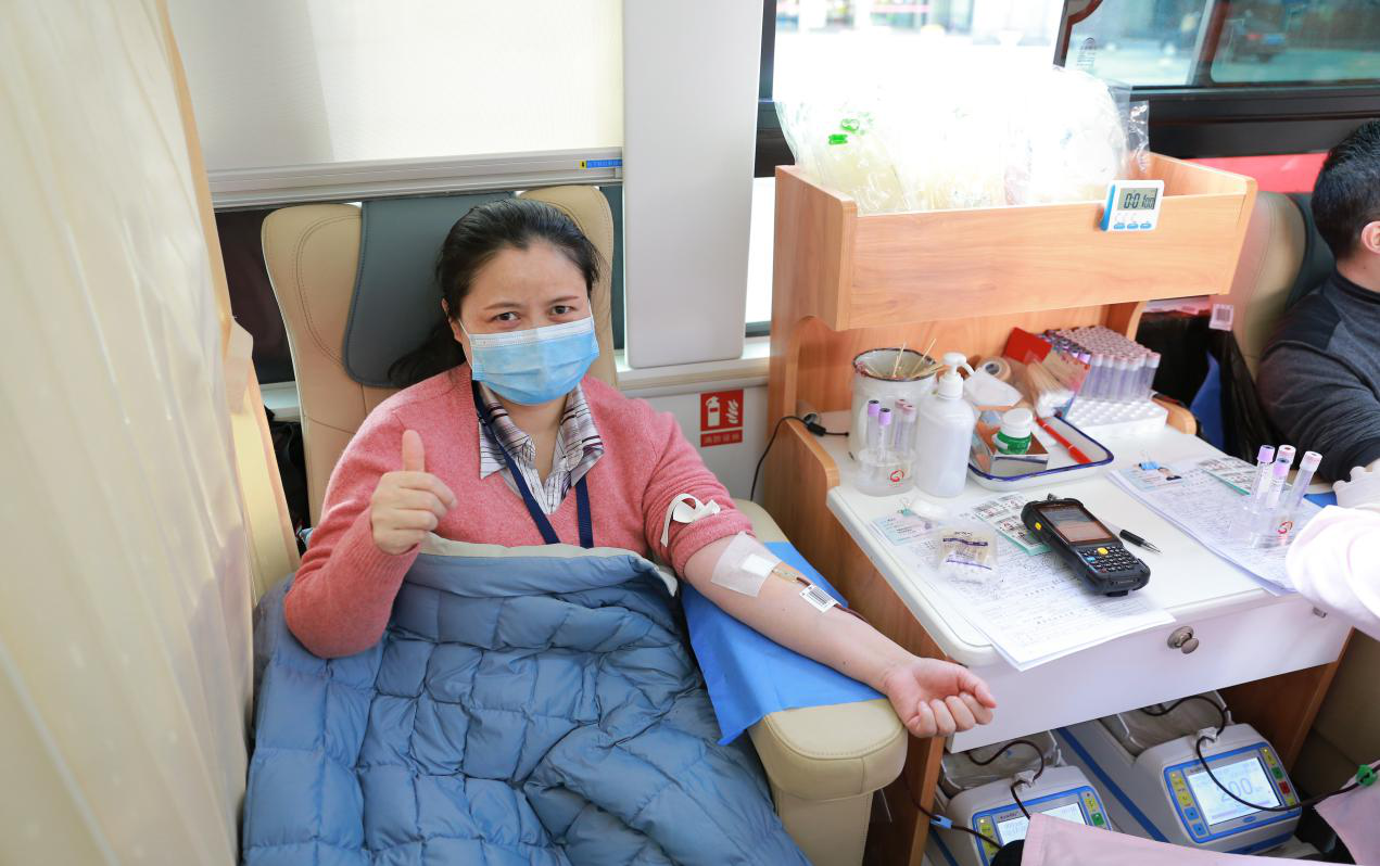 3月19日下午,職工們佩戴口罩在指定地點排好了隊,等待著獻血。活動現場上,填表、檢查、抽血,一切井然有序。